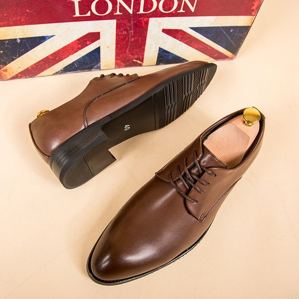 Fashion Pointed Soft Lace-up Leather Dress Shoes Men Casual Flats Business Wedding Shoes Breathable Formal Leisure Loafers