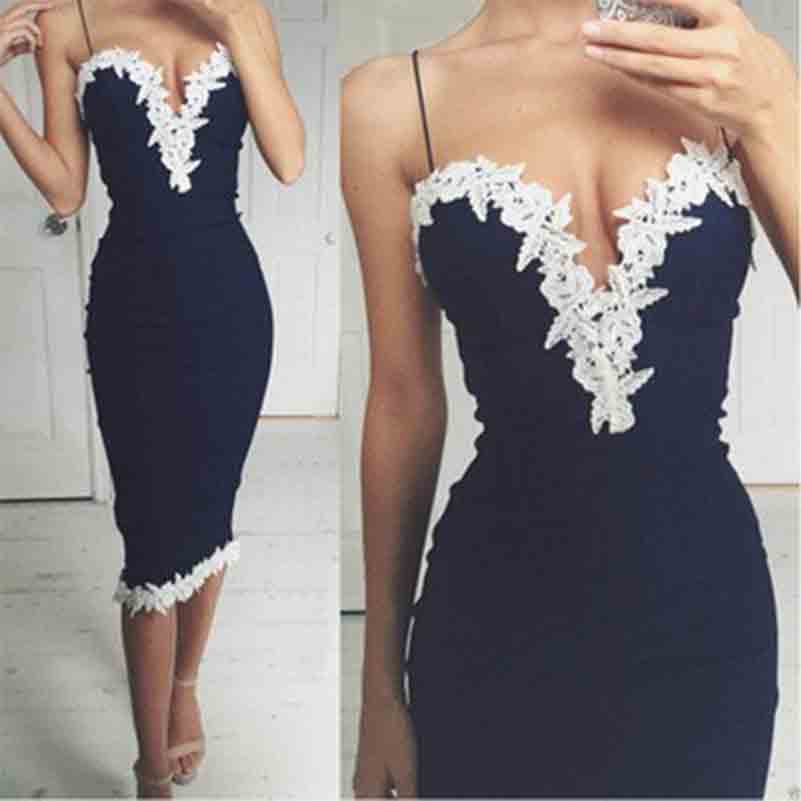 2021 new European and American summer sling lace V collar dress