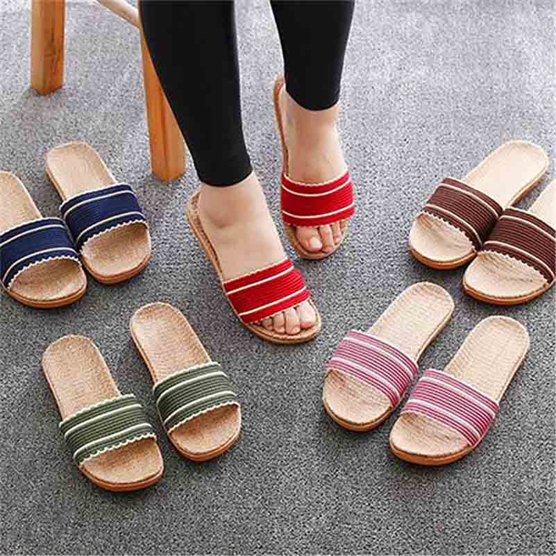 New couple men and women linen slippers spring and summer indoor breathable women’s cool sandals